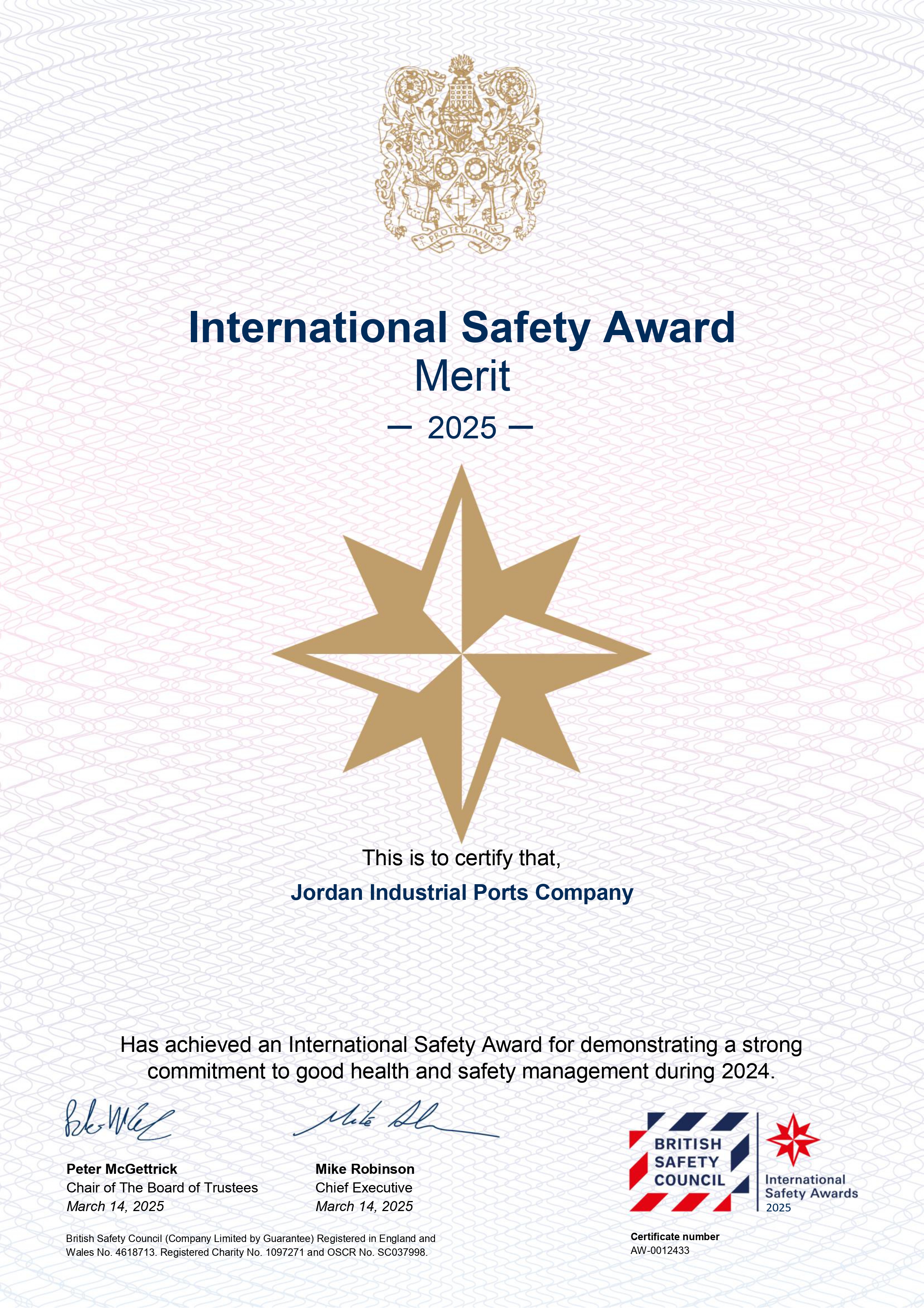 JIPC has won an International Safety Award from the British Safety Council in recognition of its commitment to keeping its workers and workplaces healthy and safe during the 2024 calendar year.